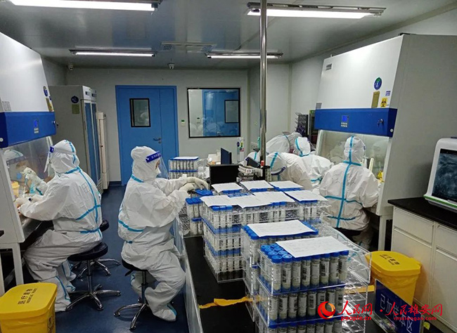 1月9日,安新縣開始進行全民核酸檢測,50多萬人口、5萬多標本。安新縣醫院連夜抽調60人組成核酸檢測隊伍,4天就完成任務。