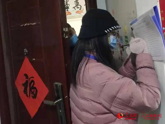 雄安雄縣的大學生社區工作者上門排查。雄安新區公共服務局供圖