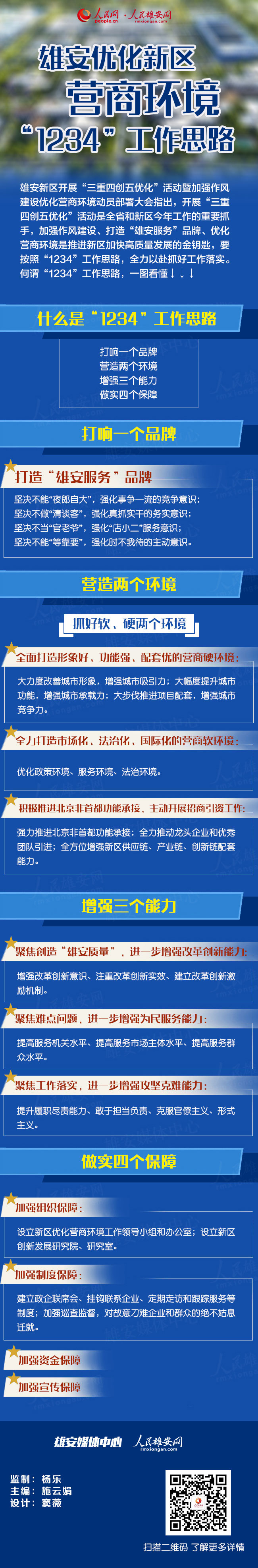 人民網雄安2月24日電 雄安新區開展“三重四創五優化”活動暨加強作風建設優化營商環境動員部署大會指出,開展“三重四創五優化”活動是全省和新區今年工作的重要抓手,加強作風建設、打造“雄安服務”品牌、優化營商環境是推進新區加快高質量發展的金鑰匙,要按照“1234”工作思路,全力以赴抓好工作落實。何謂“1234”工作思路,一圖看懂↓↓↓