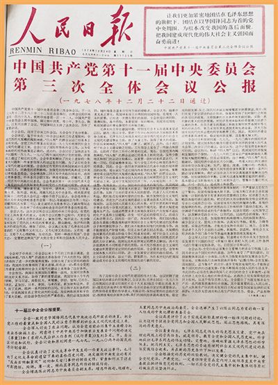 1978年12月24日,《人民日報》第一版刊發黨的十一屆三中全會公報。資料照片