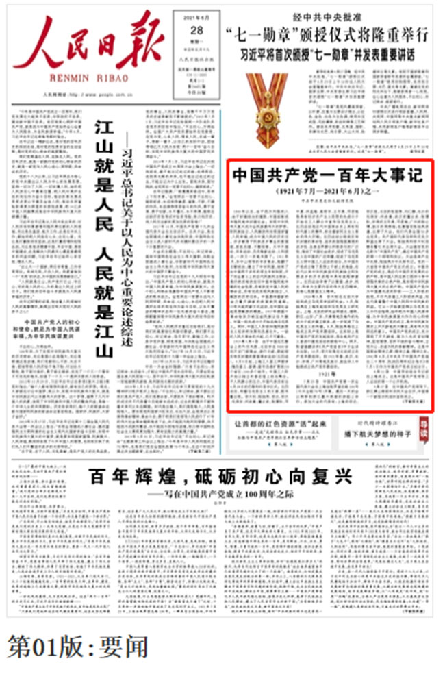 7月23日 中國共產黨第一次全國代表大會在上海法租界望志路106號(今興業路76號)開幕。最后一天的會議轉移到浙江嘉興南湖的游船上舉行。參加大會的代表有:上海的李達、李漢俊,北京的張國燾、劉仁靜,長沙的毛澤東、何叔衡,武漢的董必武、陳潭秋,濟南的王盡美、鄧恩銘,廣州的陳公博,旅日的周佛海;包惠僧受陳獨秀派遣,出席了大會。他們代表全國50多名黨員。共產國際代表馬林和尼克爾斯基出席了大會。陳獨秀和李大釗因事務繁忙未出席大會。大會確定黨的名稱為“中國共產黨”,通過中國共產黨的第一個綱領和決議。大會選舉產生中央局,陳獨秀為中央局書記。黨的一大宣告中國共產黨正式成立。中國共產黨的成立,是近代中國歷史發展的必然產物,是中國人民在救亡圖存斗爭中頑強求索的必然產物,是實現中華民族偉大復興的必然產物。中國共產黨作為中國最先進的階級——工人階級的政黨,不僅代表著工人階級的利益,而且代表著整個中國人民和中華民族的利益。它從一開始就堅持以馬克思主義為行動指南,始終把為中國人民謀幸福、為中華民族謀復興作為初心和使命。中國共產黨的成立,是中華民族發展史上開天辟地的大事變,具有偉大而深遠的意義。中國共產黨的成立,充分展現了開天辟地、敢為人先的首創精神,堅定理想、百折不撓的奮斗精神,立黨為公、忠誠為民的奉獻精神。這是中國革命精神之源、精神之基、精神之本。1941年6月,《中央關于中國共產黨誕生二十周年、抗戰四周年紀念指示》將7月1日作為中國共產黨成立紀念日。