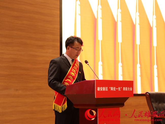 王占忠在雄安新區“兩優一先”表彰大會上作為代表發言。人民雄安網 竇微攝