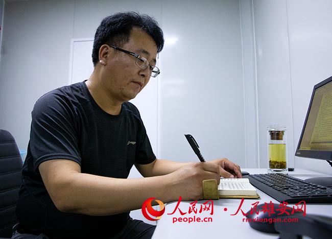 王占忠在辦公室學習各項政策。人民雄安網 宋燁文攝