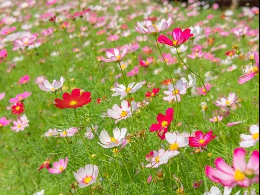在雄縣米家務鎮米黃莊村,占地40畝的波斯菊在金沙灣公園旁競相綻放,吸引了廣大市民駐足留念。放眼望去,花團錦簇,目光所致,皆是風景。