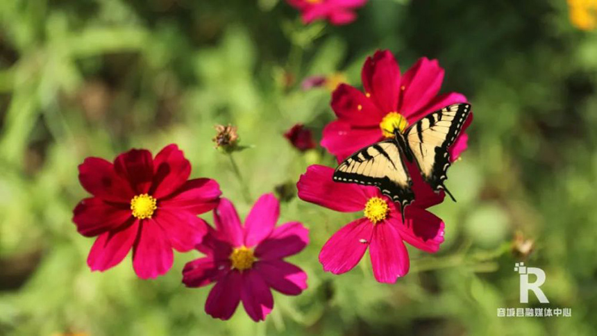 雄安新區容城縣城南花海蝴蝶正在采蜜。容城縣融媒體中心攝