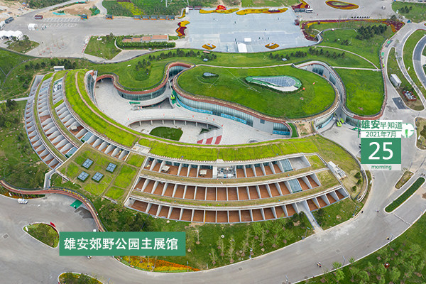 今天是2021年7月25日,星期日,天氣晴轉多云,24℃~33℃。在封面和大家見面的是雄安郊野公園雄安主場館。