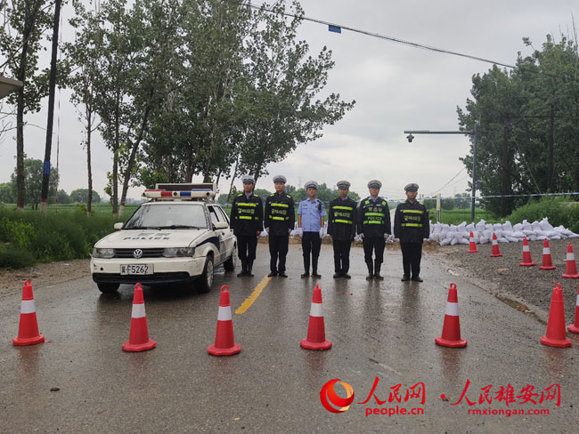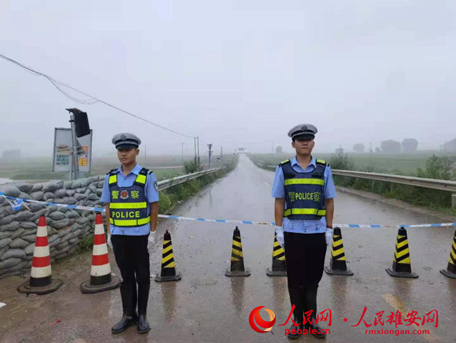 7月27日18時起,雄縣公安局交通管理大隊的民警們便駐守在分洪道兩側,對周邊道路進行交通管制,確保分洪安全!澳壳拔覀冊诹⑿侣、旅游路、固雄線的南、北堤共設卡6處,分流點6處,派出112名民警分三班全天堅守!毙劭h公安局交通管理大隊副大隊長杜海臣說:“我們準備了阻水沙袋應急,駐守兩天來,分洪道內水流并不大,沒有發現危險隱患!