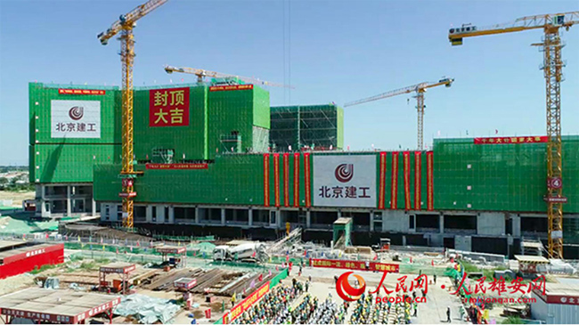 雄安宣武醫院一期封頂儀式現場。人民雄安網 宋燁文 攝