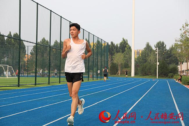 來自滄州的邊路路,已在容城工作兩年,他常和同事一起到體育公園跑步,“平時上班在辦公室里吹著空調,時間長了渾身無力,下了班出來運動一下感覺很放松。這里的體育設施比較健全,跑道也很正規,跑起來很舒服!眲偱芡暌蝗Φ乃顾粩嗤碌,但卻笑得很開心。