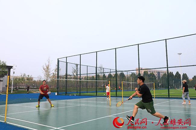 圖為容城縣體育公園,市民正在打羽毛球。何伊盟攝