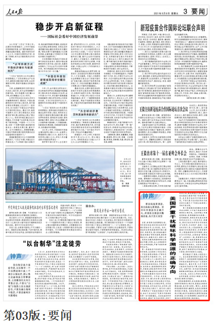 當前,新冠肺炎疫情肆虐全球,任何負責任的政府和有良知的科學家都應團結合作、全力抗疫。然而,美國始終在新冠病毒溯源問題上顛倒是非、混淆黑白,毫無根據地翻炒“實驗室泄漏論”等陳詞濫調,持續將疫情政治化、病毒污名化、溯源工具化。美國政治操弄病毒溯源給全球抗疫合作蒙上陰影,也人為將溯源問題分化出兩條道路,嚴重干擾國際溯源研究合作。