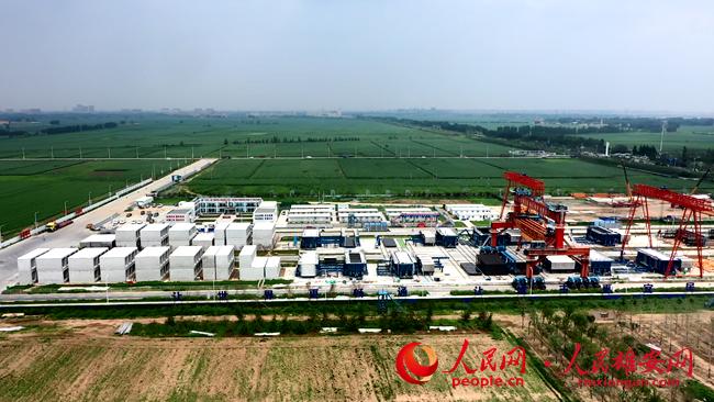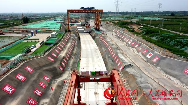 航拍雄安新區長節段、大噸位整體式預制拼裝綜合管廊示范工程建設現場。王偉男攝