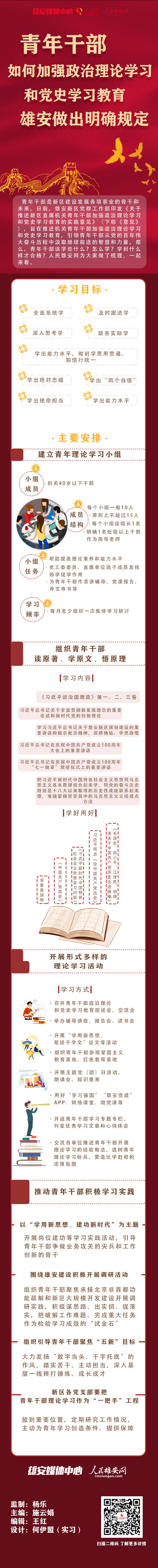 人民網雄安8月24日電 青年干部是新區建設發展各項事業的骨干和未來。日前,雄安新區黨群工作部印發《關于推進新區直屬機關青年干部加強政治理論學習和黨史學習教育的實施意見》,旨在推進機關青年干部加強政治理論學習和黨史學習教育,引領青年干部從黨的百年偉大奮斗歷程中汲取繼續前進的智慧和力量。那么,青年干部該學些什么?怎么學?學到什么樣才合格?人民雄安網為大家做了梳理,一起來看↓↓↓