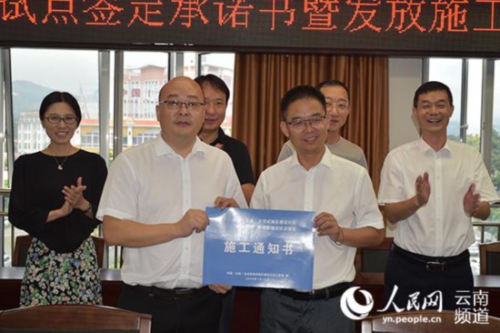 云南自貿試驗區德宏片區管委會向企業發放“先建后驗”項目施工通知書。張帥攝