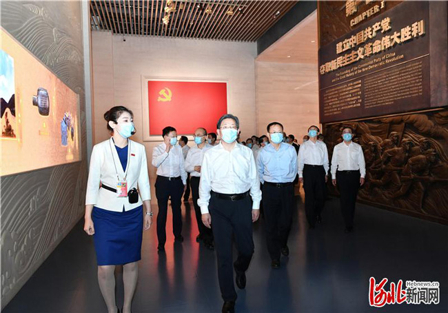 學習考察結束后,我省黨政代表團專程來到中國共產黨歷史展覽館參觀學習,共同接受教育,重溫我們黨100年來波瀾壯闊的奮進歷程,進一步增強向著第二個百年奮斗目標前進的信心和決心。展廳內,一張張圖片、一件件文物、一個個場景,全景展現了我們黨不忘初心、牢記使命,團結帶領全國各族人民迎來從站起來、富起來到強起來偉大飛躍的光輝歷史。我省黨政代表團成員認真聽取講解,深切思考感悟。大家一致表示,要深入學習貫徹習近平總書記“七一”重要講話精神,大力弘揚偉大建黨精神,深入開展黨史學習教育、“四史”宣傳教育,傳承紅色基因,賡續紅色血脈,加快建設經濟強省、美麗河北,努力為全面建成社會主義現代化強國作出新的更大貢獻。
