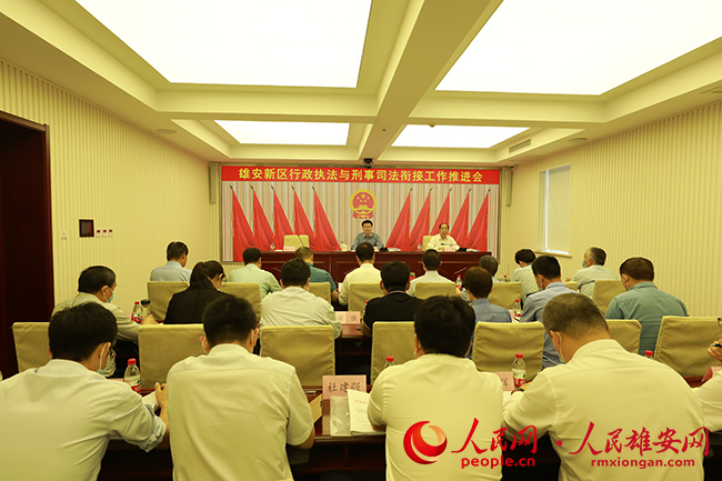 陳峰在會上指出,加強“兩法銜接”,是貫徹黨中央決策部署,全面推進依法治國的重要任務。當前雄安新區已進入承接北京非首都功能疏解和建設同步推進的關鍵階段,加強“兩法銜接”,是落實“五新”目標,進一步優化營商環境的重要措施,是落實《河北雄安新區條例》,在新的起點推進法治政府建設的有力舉措。