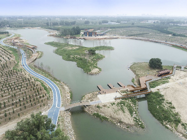據了解,“千年秀林”項目在前期造林的綠色基底上,結合城市建設需求,進行重點景觀改造提升,對園區內的景觀水系開展生態補水工作。該工程涉及的園區水系自南向北分布,下游延伸到白洋淀,補水面積38萬平方米,補水最深可達9.0米。
