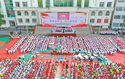 國慶假期,湖北省南漳縣實驗中學師生齊唱紅歌。劉江攝(人民視覺)
