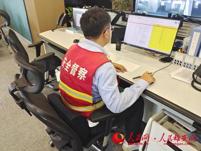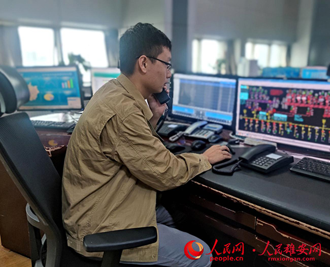同樣堅守崗位的還有國網雄安供電公司安全管控中心的安全監控員戴霆瑋,他的工作是對著大屏幕遠程監督雄安新區各個電網項目的施工情況,包括施工人員是否規范、現場是否存在安全隱患。