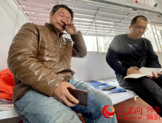 館陶縣王橋鄉徐萬倉村黨支部書記徐俊峰在衛運河大堤的簡易房中接受采訪時幾度落淚。 周紹宗攝