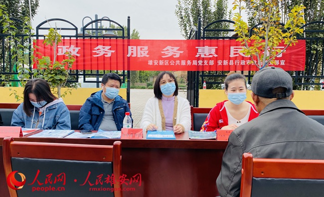 這場“問答”,是由雄安新區公共服務局黨支部聯合安新縣行政審批局黨支部開展的“政務服務惠民行”進農村活動,現場匯集了來自公共服務局便民事項服務組、社會保障組、衛生健康組、市場準入組、教育體育組、文化旅游組、行政審批改革組、農業農村水利組、就業創業勞動關系組、民政組等的15名黨員干部、業務骨干,“零距離”為村民服務。