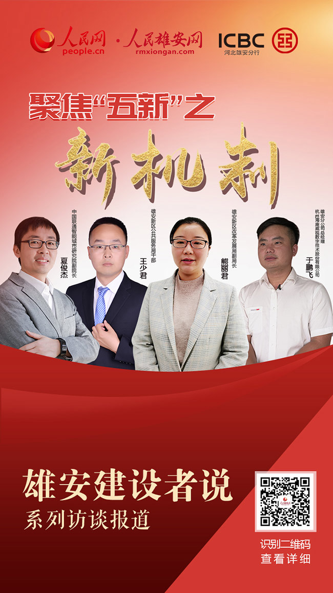編者按:雄安新區2021年建設發展工作會議提出,要全力聚焦“新形象、新功能、新產業、新人才、新機制”目標,高標準高質量推進新區建設發展。人民雄安網走訪雄安新區各單位,聽建設者們從不同角度講述如何理解、實現“五新”目標。從今天開始,本網將推出“聚焦‘五新’目標 雄安建設者說”系列訪談報道。本期推出“新機制”篇。