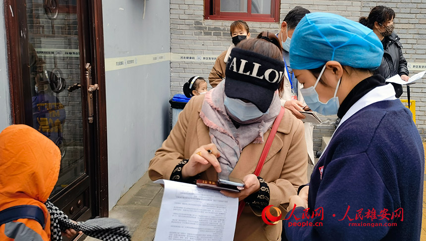 雄安新區雄縣醫院內,一位帶孩子來接種新冠病毒疫苗的家長正在核對信息。周炳宇攝