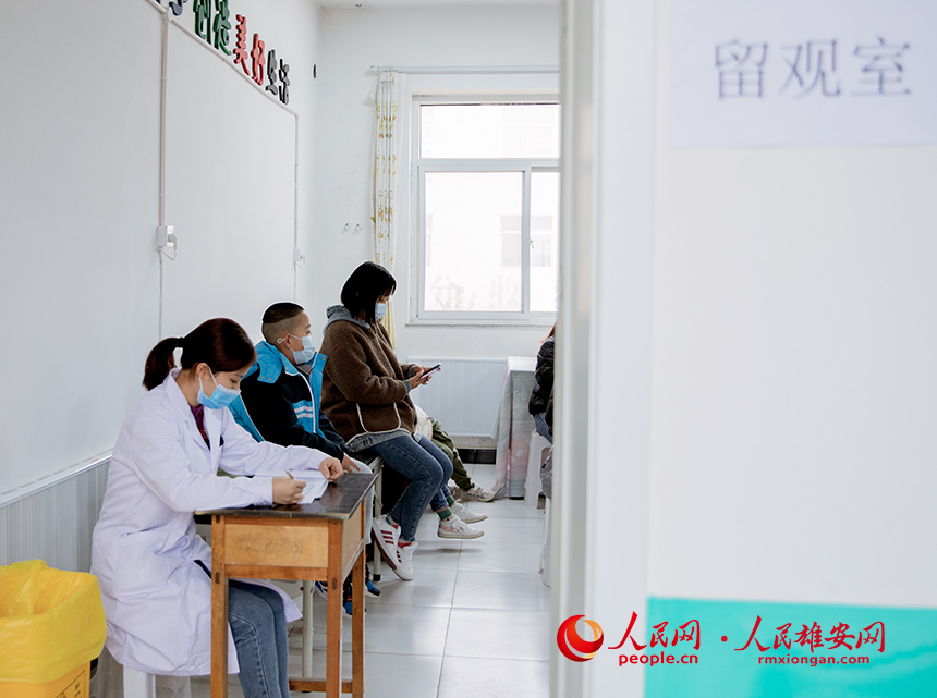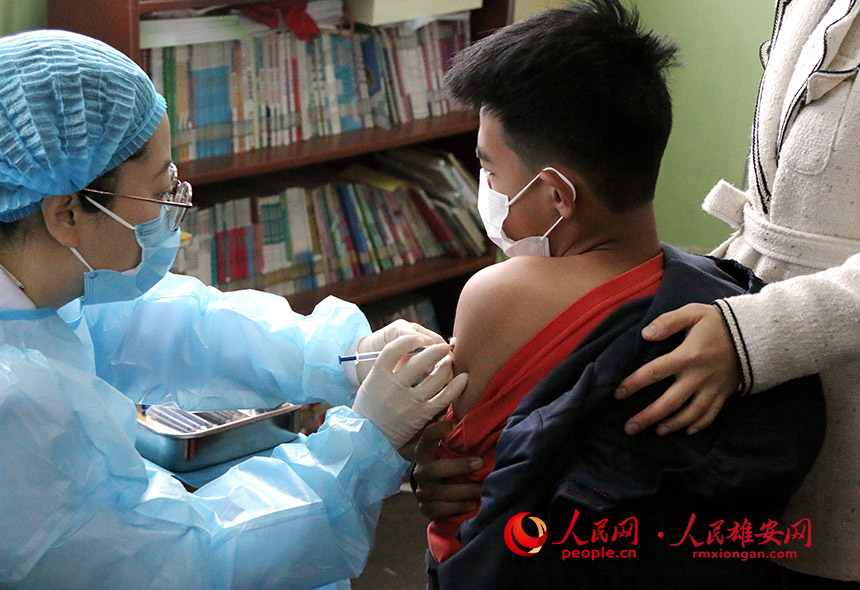 雄安新區安新縣第二小學的學生正在接種疫苗。人民網 劉師豪攝