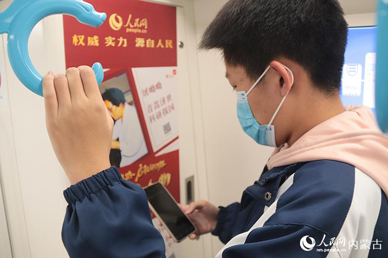 學生正在掃描海報上的二維碼。人民網 劉藝琳攝