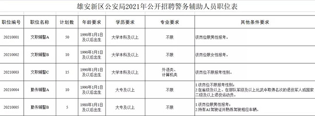 雄安新區公安局2021年度公開招聘警務輔助人員公告