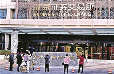 昨日,金融街金陽大廈,北京證券交易所辦公大樓已完成門牌吊裝和焊接工作。今日,北交所所有股票將在這里正式開市交易。攝影/本報記者 崔峻