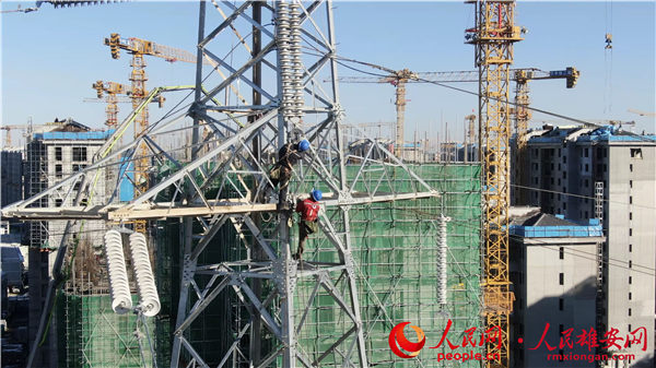 同時,為縮短遷改停電時間,降低用戶影響,國網雄安新區供電公司與國網保定供電公司無縫對接,組織多次聯合踏勘和綜合論證,采取搭建臨時電源線的方式予以過渡,將110千伏線路切改的停電時間由常規方式下的10天壓縮為2天,將10千伏用戶停電時間由7天壓縮至1天,戰勝了保供電壓力的挑戰。