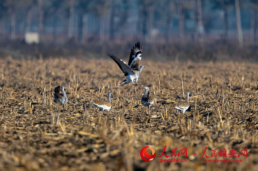 此外,安新縣當地愛鳥人士日前還拍攝到了38只國家一級重點保護野生動物大鴇在田地里棲息,這也是有記錄以來大鴇連續第16次在雄安新區越冬。