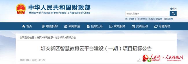 以上是財政部官方網站發布的《雄安新區智慧教育云平臺建設(一期)項目招標公告》中透露的。