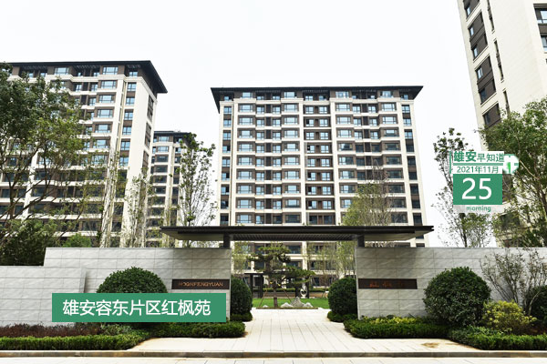 今天是2021年11月25日,星期四,天氣晴,-4℃~11℃。在封面和大家見面的是雄安容東片區紅楓苑。