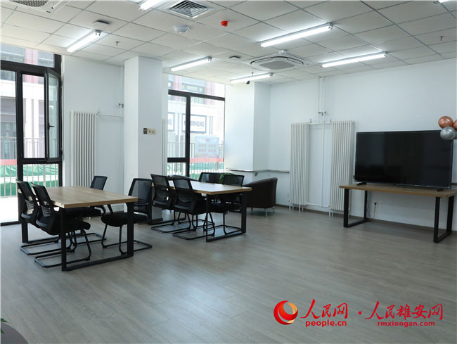 人民網記者在現場看到,容東第三養老驛站共有兩層,面積超過1000平方米,內部設置了多功能活動區、心理輔導室、醫療保健室、學習區、棋牌室、多媒體室等多樣化功能性區域,棋牌桌、乒乓球桌、臺球桌、電視、電腦等應有盡有。