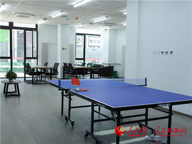 容東第三養老驛站活動區配有乒乓球桌。人民網 李兆民攝