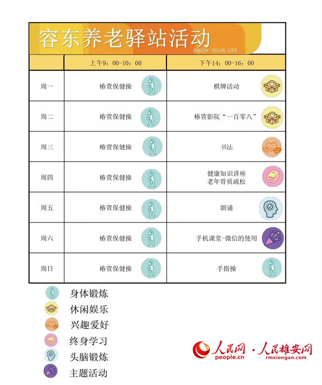容東第三養老驛站即將推出的活動日程表。人民網 李兆民攝