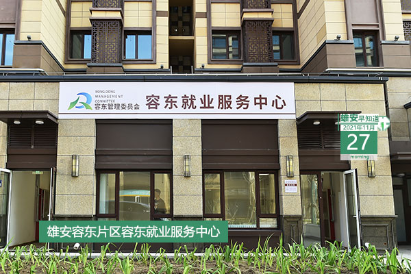 今天是2021年11月27日,星期六,天氣陰轉晴,-2℃~12℃。在封面和大家見面的是雄安容東片區容東就業服務中心。