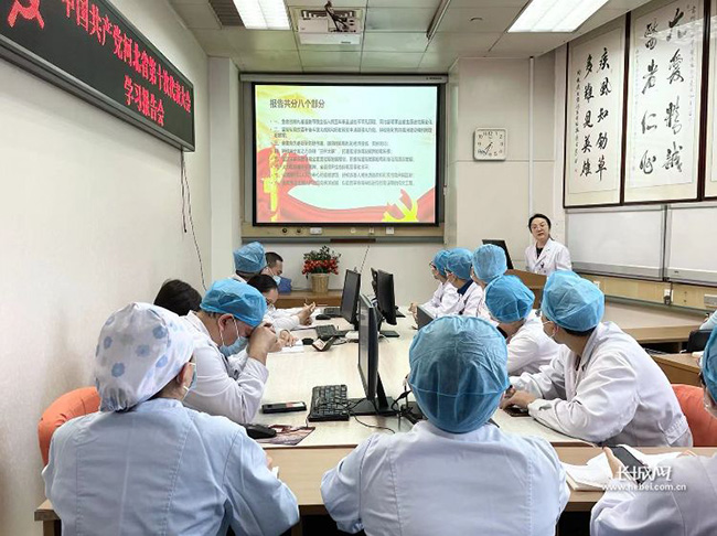 省第十次黨代會召開的歷史意義、總結過去五年的歷史性變化、確定今后五年的奮斗目標……袁雅冬仔細講解,醫護人員認真傾聽,不時用筆記錄下關鍵詞。