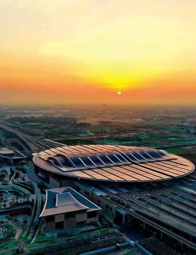 雄安新區已落成的建筑,擁有著鮮明的“中國面孔”。站在雄安商務服務中心廣場向北望去,視線掠過白色的大理石地面,經過中央巨大的石質日晷“時間之眼”,便看到一座朱紅墻體、灰色飛檐的建筑。這是新區首個城市建筑群,包括酒店、會議展覽、科技成果展示交易中心等。通過綠色建筑技術的集成與創新,這里已實現綠建三星標準全覆蓋、局部超低能耗建筑示范引領的目標,項目預計每年可節約用電1100萬度。