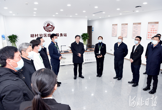 隨后,王東峰、王正譜來到胡村社區黨群服務中心,看望慰問社區工作者,感謝大家在服務居民回遷、落實惠民政策、促進社區建設等方面做的大量富有成效的工作。王東峰在向大家宣講黨的十九屆六中全會精神時指出,黨的十九屆六中全會是在“兩個一百年”奮斗目標歷史交匯點召開的一次具有里程碑意義的重要會議。全會審議通過了《中共中央關于黨的百年奮斗重大成就和歷史經驗的決議》,習近平總書記對《決議》作了說明并發表重要講話,具有重大的政治意義、歷史意義、時代意義,極大凝聚了全黨全國各族人民奮力開啟全面建成社會主義現代化強國新征程的磅礴偉力。不久前閉幕的省第十次黨代會,就深入貫徹落實黨的十九屆六中全會精神,加快建設現代化經濟強省、美麗河北作出全面部署。希望雄安新區廣大黨員干部群眾帶頭學習宣傳貫徹黨的十九屆六中全會精神,把握核心要義,學深悟透做實,推動習近平總書記重要指示和黨中央決策部署落地生根、開花結果。要牢牢把握歷史性窗口期和戰略性機遇期,按照省第十次黨代會作出的“兩翼、兩區、三群、六帶”發展布局,全力加快雄安新區建設發展步伐,為建設現代化經濟強省、美麗河北作出雄安貢獻。