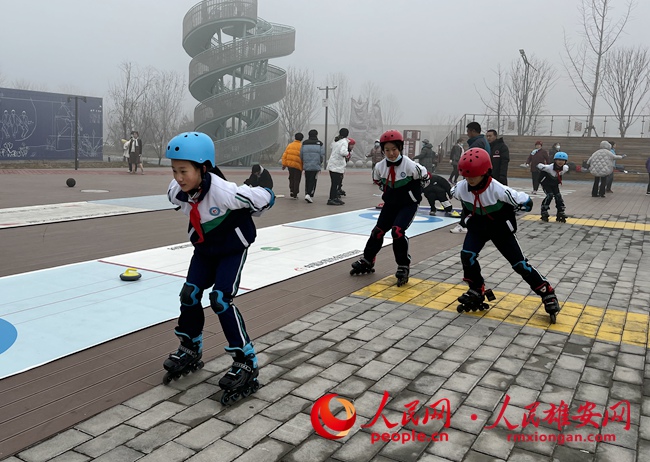 人民網雄安12月11日電 (劉師豪)雄安新區容城縣社區冰雪運動會今日在漫生活廣場舉行,來自朝陽社區、和平社區、平安社區、團結社區的四個代表隊共計百余名選手,參加了桌面冰壺、陸地冰壺、冰球、輪滑和滑輪等項目的比賽。