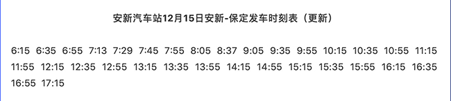 9、安新汽車站12月15日更新安新至保定發車時刻表。