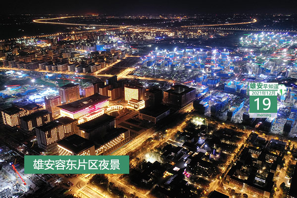 今天是2021年12月19日,星期日,天氣晴轉多云,-4℃~9℃。在封面和大家見面的是雄安容東片區夜景。