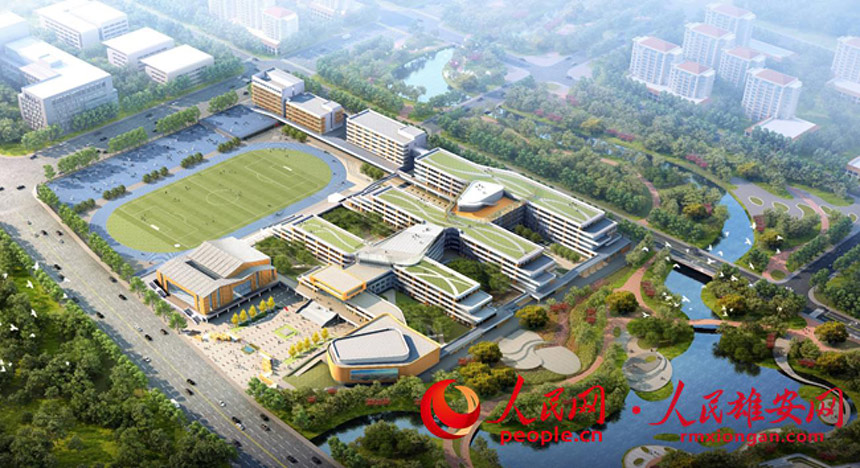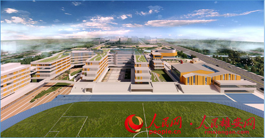 雄安新區容東片區完全中學項目設計鳥瞰圖。中建八局供圖