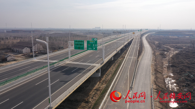 航拍上跨京雄高速的S333省道新建4號橋。人民網 李兆民攝