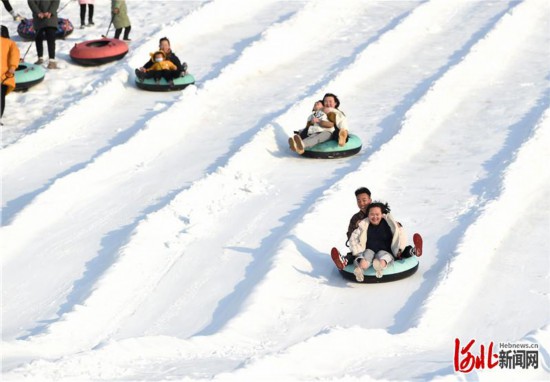 1月2日,游客在臨城縣綠嶺冰雪樂園滑雪圈,享受冰雪樂趣。河北日報記者趙永輝攝