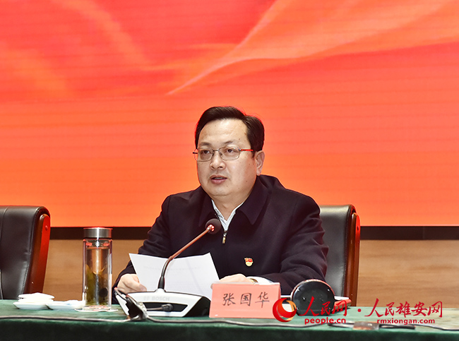 張國華指出,在全黨開展黨史學習教育,是以習近平同志為核心的黨中央立足百年建黨偉業新起點、著眼開創事業發展新局面作出的一項重大戰略決策。習近平總書記多次發表重要講話,作出重要指示,為開展黨史學習教育提供了根本遵循。省委高度重視黨史學習教育,召開動員大會全面部署、精心組織實施。省委書記王東峰同志多次到雄安新區開展專題宣講,為高標準高質量開展黨史學習教育和建設發展雄安新區提供了有力指導和強大動力。在黨中央和省委的堅強領導下、在省委第二巡回指導組的悉心指導下,雄安新區黨工委認真履行政治責任,精心組織、周密部署、扎實開展黨史學習教育,取得了重要成果:堅持以上率下,實現理論學習有深度,在旗幟鮮明講政治上取得顯著成效;堅持創新引領,實現社會參與有廣度,在學思踐悟守初心上取得顯著成效;堅持問題導向,實現為民服務有溫度,在人民群眾得實惠上取得顯著成效;堅持多維聯動,實現氛圍營造有熱度,在干事創業開新局上取得顯著成效。