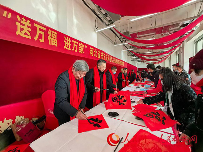 6、河北省文聯近日組織書法和攝影藝術家來到雄安新區容東片區,開展“送福進萬家”文化惠民暨采風創作活動,為容東社區工作者、新區回遷群眾、建設者提前送去新春祝福和節日問候。